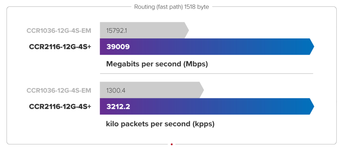 First and foremost, as you heard, the CCR2116 enjoys the existence of a 16-core CPU with the advanced ARM 64bit architecture, continuing the new-gen processing of powerful predecessors such as MikroTik's RB5009UG+S+IN and CCR2004-16G-2S+. According to MikroTik, the CCR2116 seemingly, and we quote, "eats ... for breakfast" other Ethernet routers for fun in a number of areas, especially when it comes to single-core performance.