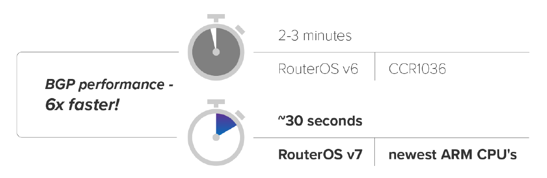 Put up against the highly capable CCR1036-12G-4S-EM, the CCR2116 (with only 16 CPU cores) easily yields double the performance of the former. As the numbers show, we're looking at an average power increase of 150% here. And if that isn't enough, the CCR2116 offers a BGP performance that is 6 times faster than the potential of the CCR1036.