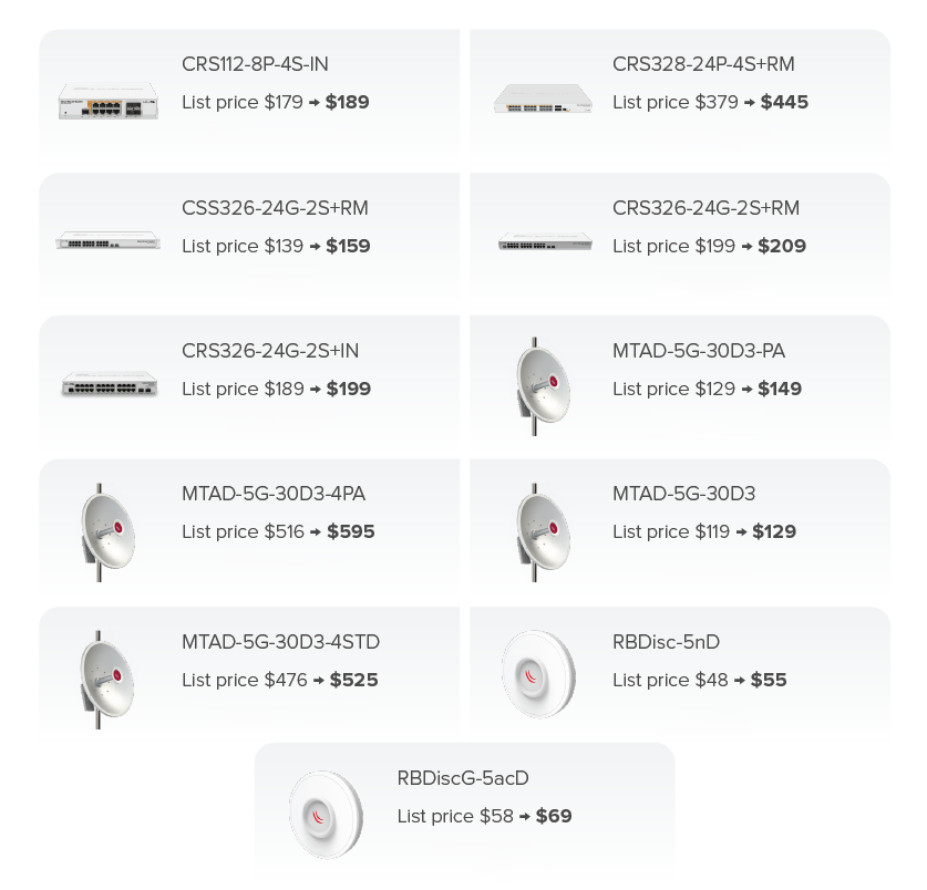 As of November 25, 2021, MikroTik has officially made some changes in the prices of 11 items, and effective immediately, the following hardware will be on offer with their new tags: