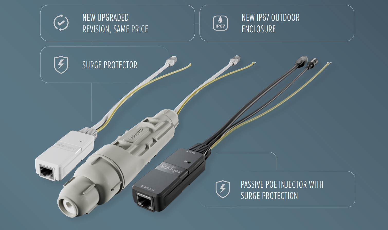 Lightning strikes and electric surges are one of the most common threats to antennas and network setups. Prior preparation goes a long way. That's why MikroTik has added a revised version of its classic GESP and a brand new device, the GESP+PoE-IN to its accessories to put your mind at ease!
