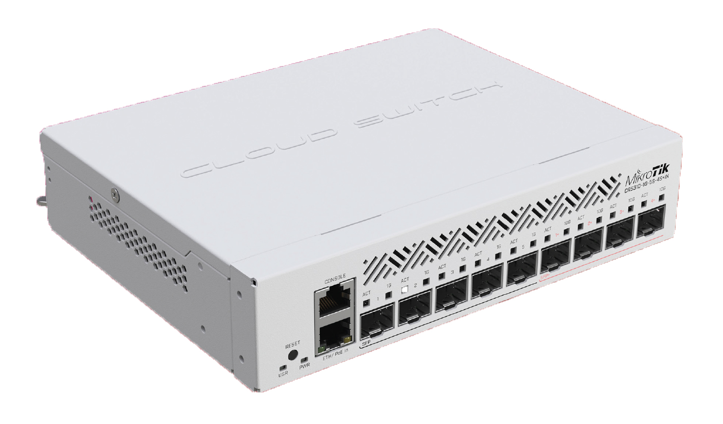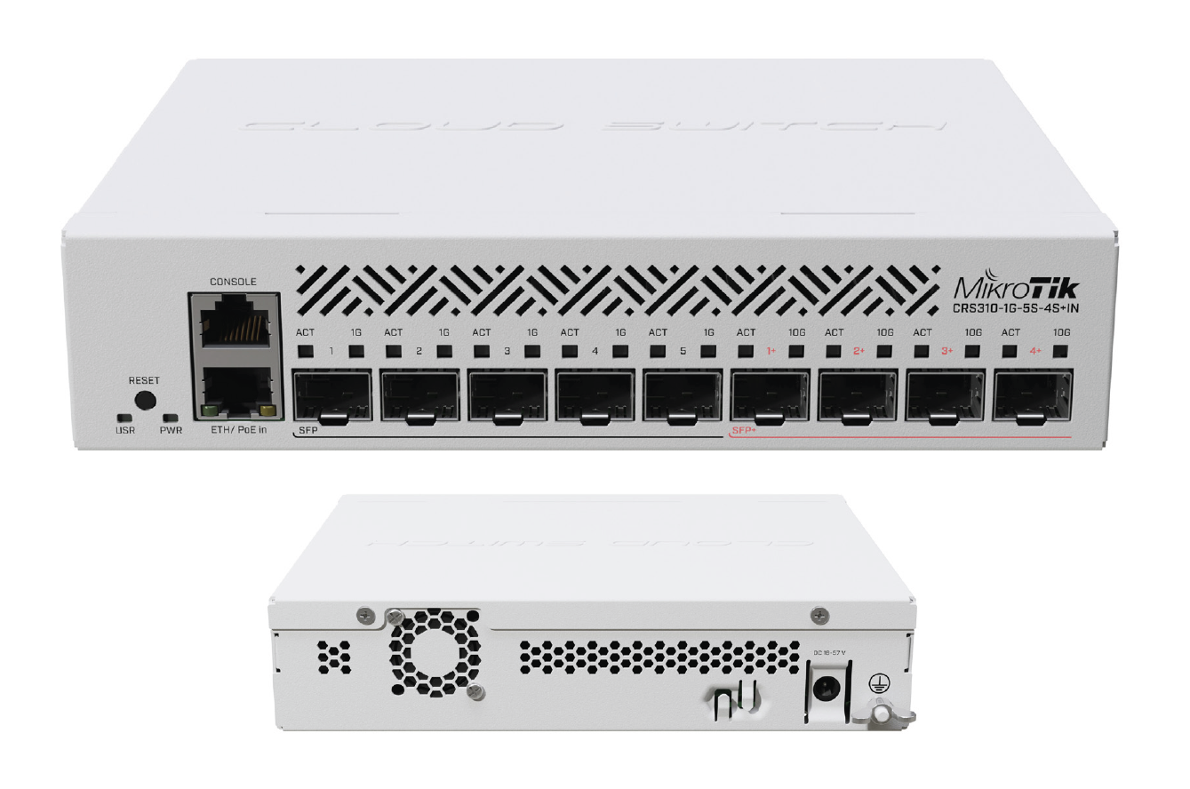 With 5 Gigabit SFP ports and 4 10G SFP+ ports, the new CRS310 has been introduced as the indoor variation of the user-favorite switch netFiber 9, and MikroTik itself recommends this device as a replacement for its CRS212-1G-10S-1S+IN.