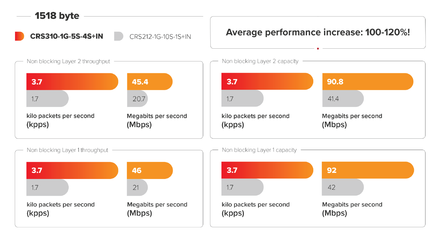 Check out the table below. As you can see, the CRS310 is showing an all-around greater performance than its fellow indoor switch.