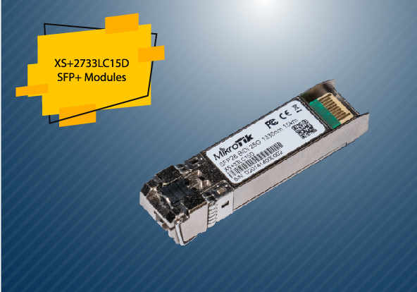 Pay the same price for more extensive features and longer distances with the new XS+2733LC15D SFP+ modules. The most recent MikroTik interface guarantees up to 25 Gbps throughput on a single optical cable for as far as 15 Kms.