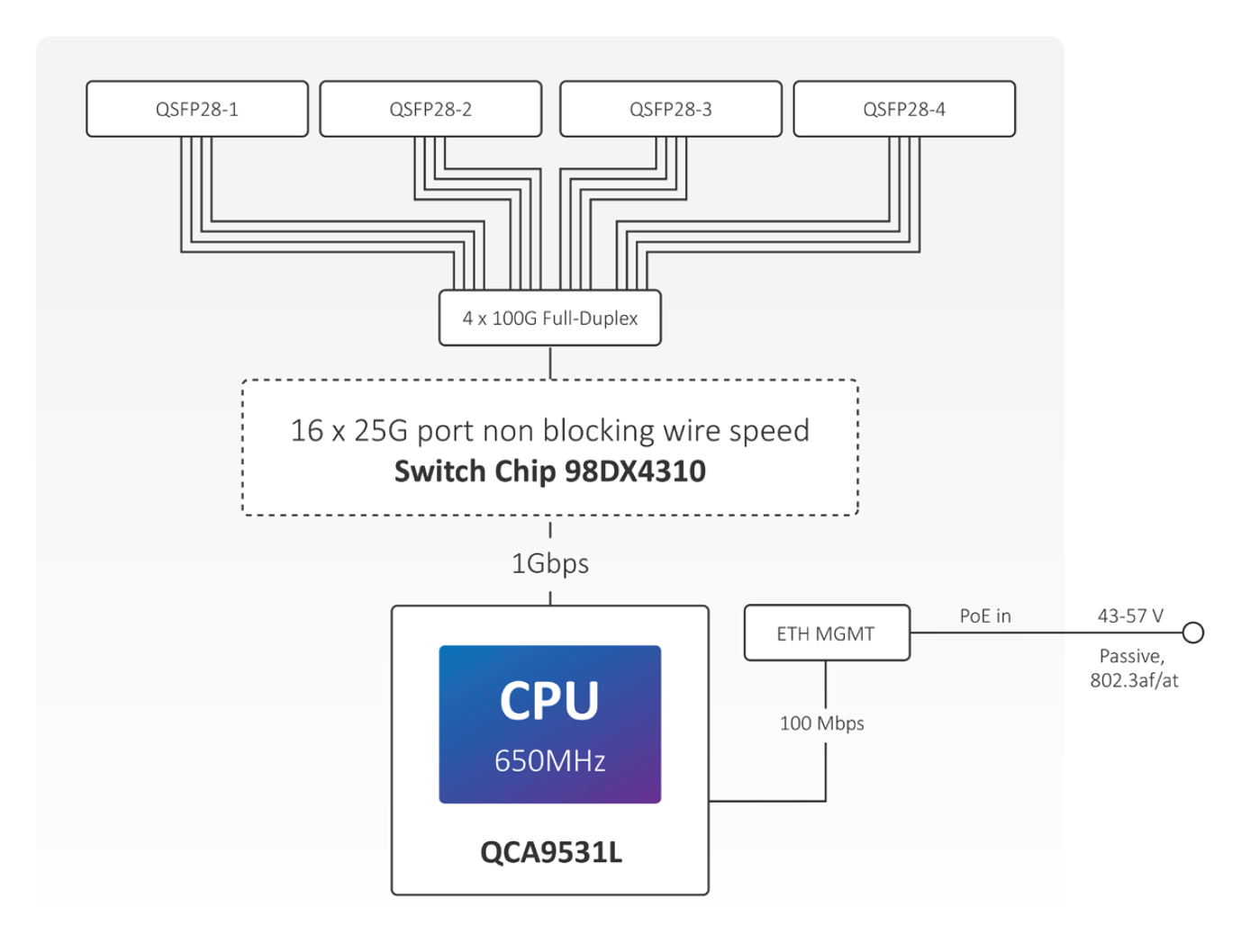 With four QSFP28 ports, this device is a perfect Cloud Switch for transferring high-volume traffic at exceptionally fast speeds.