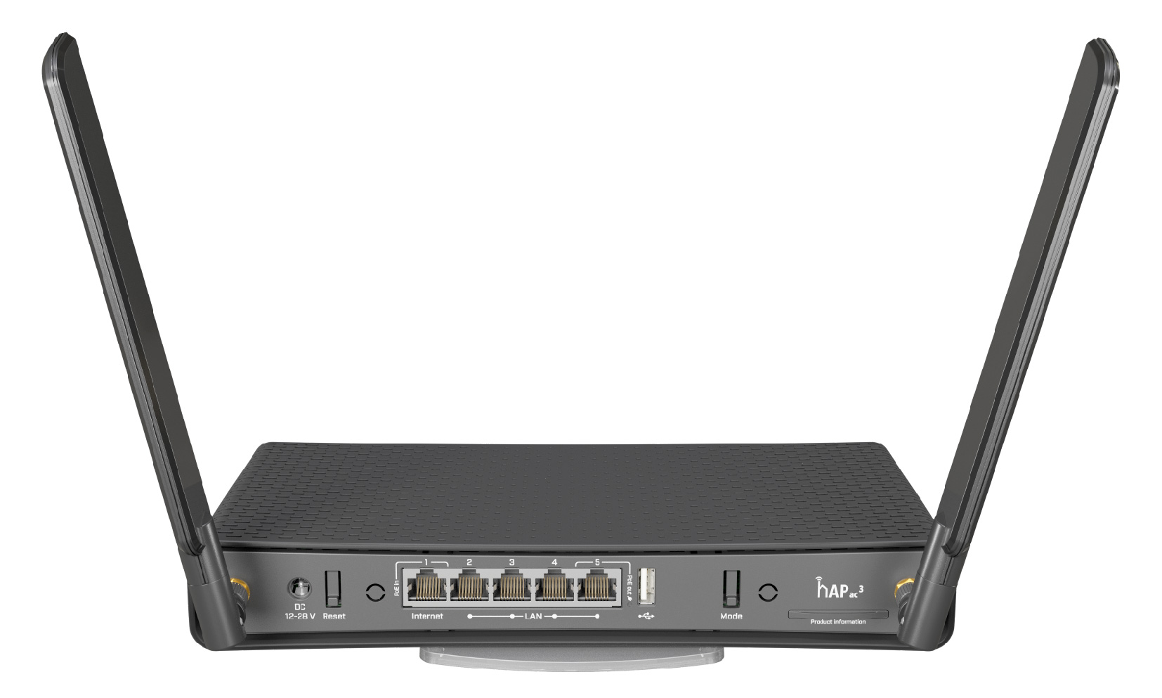 In addition to a quad-core 716 MHz CPU and a RAM size of 256 MB, the hAP ac3 has 5 Gigabit Ethernet ports with PoE-in and PoE-out, offering you the flexibility of a backup powering option to maximize uptime and the added option of powering a nearby device. Also, this device has a Type A USB port for extra storage, giving it much greater freedom to be used for data-intensive tasks.