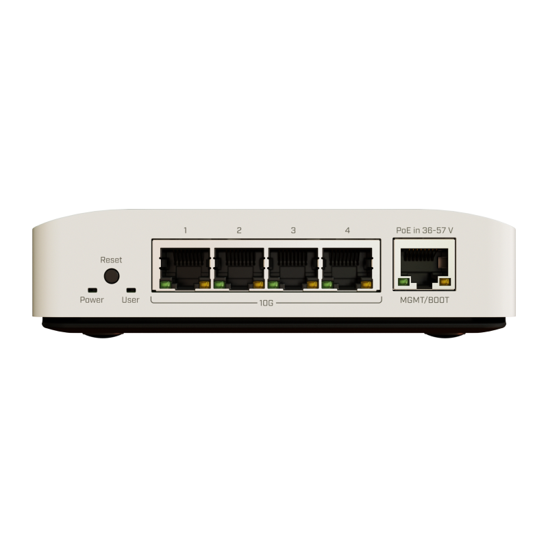 To maintain ease of use and efficient port management, the CRS304-4XG-IN includes a dedicated Gigabit Ethernet port specifically for network management. This leaves the four high-speed ports free for device connections, keeping everything running at top speed without interference.