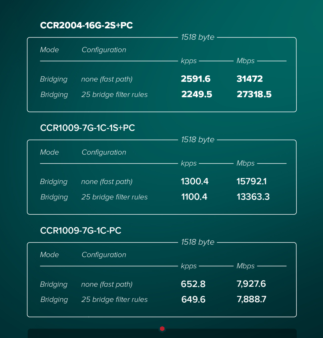 The CCR2004-16G-2S+PC easily surpasses some previous best-seller Ethernet routers, especially two of its passively-cooled counterparts, namely the CCR1009-7G-1C-1S+PC and the CC1009-7G-1C-PC.