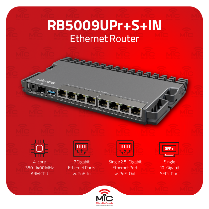 RB5009UPr+S+IN: Designed for indoor use, this router offers Reverse PoE functionality, allowing for flexible deployment in offices, homes, or industrial settings where running traditional power cables is challenging.